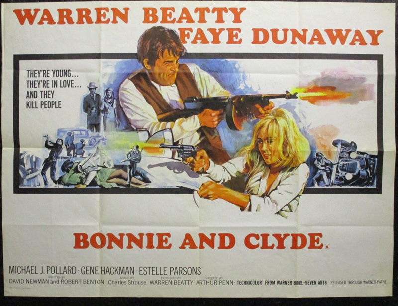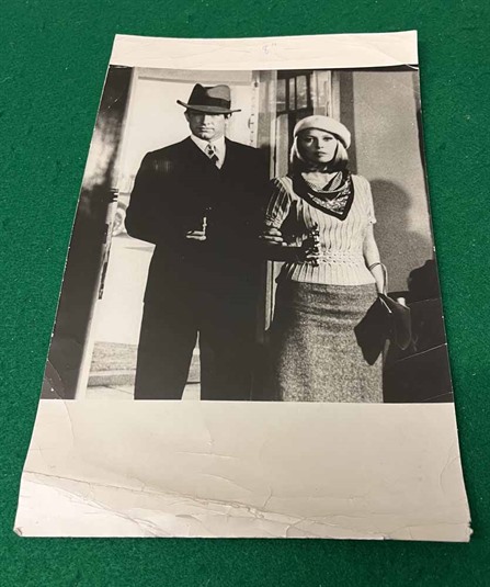 An original b/w still ( 7 1/2"x 12 1/4") for "Bonnie And Clyde" (1967), this still being used by Chantrell for reference when composing the poster artwork for the film (see the illustration to the upper left - image courtesy of