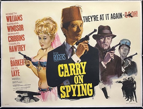 Three A4 pieces related to Chantrell's work for the James Bond spoof "Carry On Spying" (1964).Included are two pages of printed cast names, both with Chantrell pencil annotations & one with some lettering cut-out.