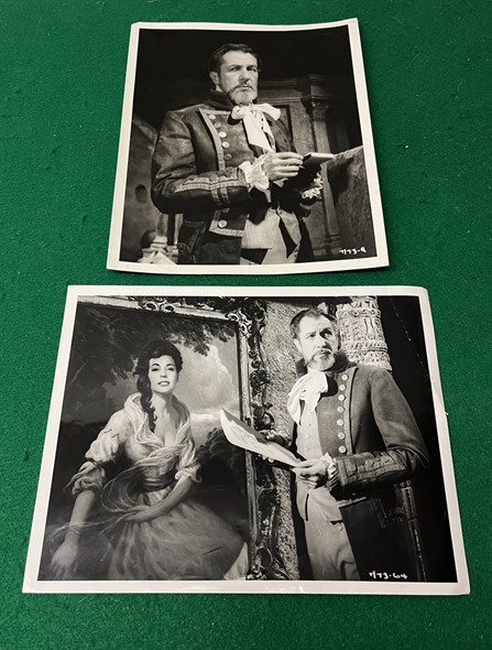 Two original b/w reference photos (8"x 10") for the British horror film "City Under The Sea" (1965) showing the star, Vincent Price.