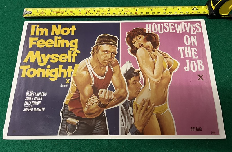 Large color photo (8"x 12 1/2") showing the Chantrell Quad for the double-bill of "I'm Not Feeling Myself Tonight" paired with "Housewives On The Job" (1975).