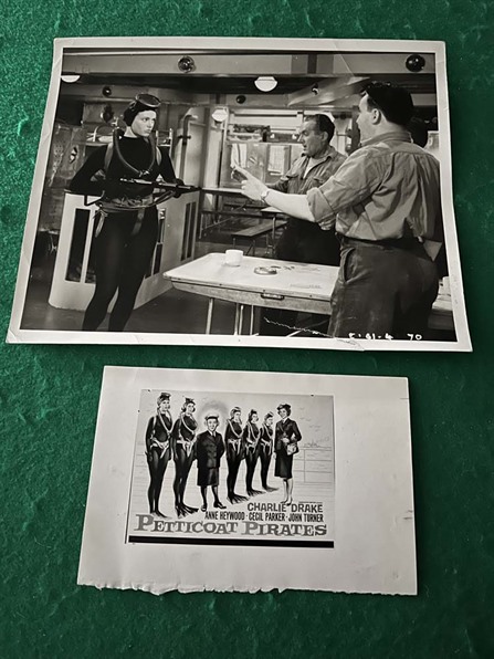 A b/w photo (8"x 10") concerning the British comedy "Petticoat Pirates" (1961), sold together with a smaller period photo of Chantrell's Quad poster artwork.