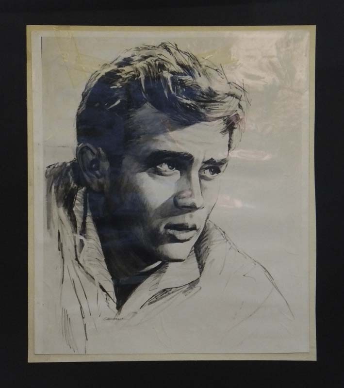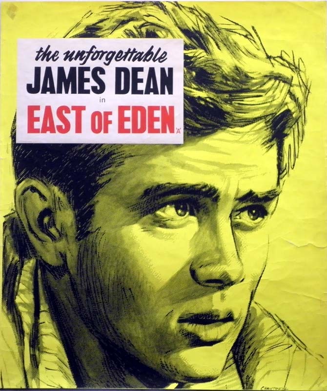 In the early 1960's, Chantrell created a lift-bill poster for a re-release of the James Dean film "East of Eden" (1955). This is a photo (8"x 9") of Chantrell's artwork for the lift-bill (shown here for comparison). The photo has several sellotape repairs to the upper portion. Chantrell mounted the photo on card with a tracing paper overlay & kept this item for later reference.