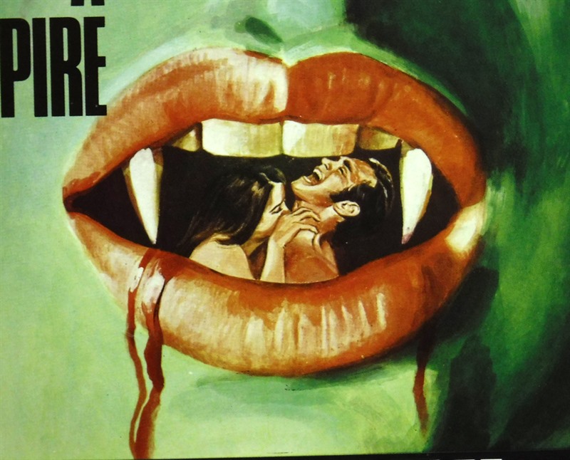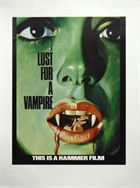 An original mounted flyer for the Hammer horror film "Lust For A Vampire" (1970), this being an un-cut version with a blank white surround (measures 11"x 14 1/4" but the white margin would have been removed producing a flyer of 8 3/4"x 11 1/4"). The flyer has been mounted onto card. This is one of a number of similar flyer designs Chantrell produced for Hammer, the flyers distributed in pre-production to help secure finance & promote the films.