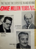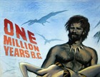 This is a fascinating piece of Chantrell/Hammer memorabilia. It is a large page (11 1/2"x 15 1/2") from a printed pre-production marketing brochure for the 1965 film "One Million Years BC". One side carries a printed full colour Chantrell concept for the film with Chantrell's signature bottom right. However, this page was cut from the brochure & Chantrell has added painted embellishments (particularly the top left portion where a card cut-out bearing the "ONE MILLION YEARS BC" script, has been added). Highlighting of both the caveman's hair & the hair & "skirt" of the carried cavewoman, plus the vegetation top right, has also been carried out.