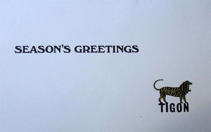 A large Tigon Christmas Card (5 3/4"x 11 1/4") c'1972 in un-used condition.
